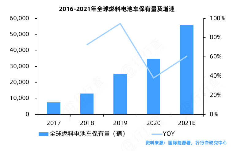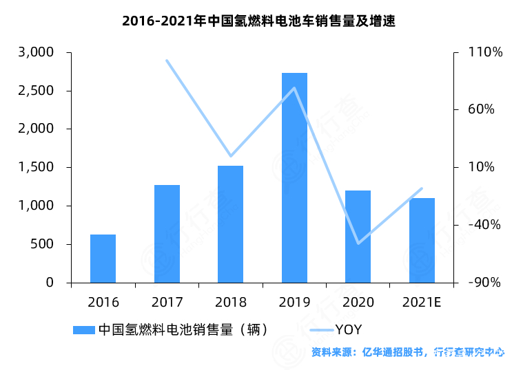 我國氫燃料電池車產(chǎn)業(yè)已基本涵蓋氫燃料電池整車、氫燃料電池系統(tǒng)、氫燃料電池電堆及零部件領(lǐng)域,基本建成以整車制造及氫燃料電池系統(tǒng)為主的氫燃料電池車供應(yīng)鏈和產(chǎn)業(yè)鏈體系,尤其是在系統(tǒng)、電堆等方面已基本實(shí)現(xiàn)了國產(chǎn)化供應(yīng)。2016-2020年我國氫燃料電池車保有量逐年攀升,近兩年受到疫情影響保有量增速有所下滑,根據(jù)中汽協(xié)及新能源汽車國家監(jiān)測與管理平臺公布的統(tǒng)計數(shù)據(jù)顯示,截至2021年11月我國氫燃料電池汽車保有量為8,452輛。2016-2019年中國氫燃料電池汽車銷量逐年上升,2020年以及2021年銷量下滑的主要原因是疫情以及補(bǔ)貼政策轉(zhuǎn)向及示范城市群的開展導(dǎo)致銷量下降,預(yù)計產(chǎn)品銷量會延遲到2022年放量。截至2021年11月底,2021年我國氫燃料電池車銷售量超1,000輛,市場進(jìn)入商業(yè)化初期。