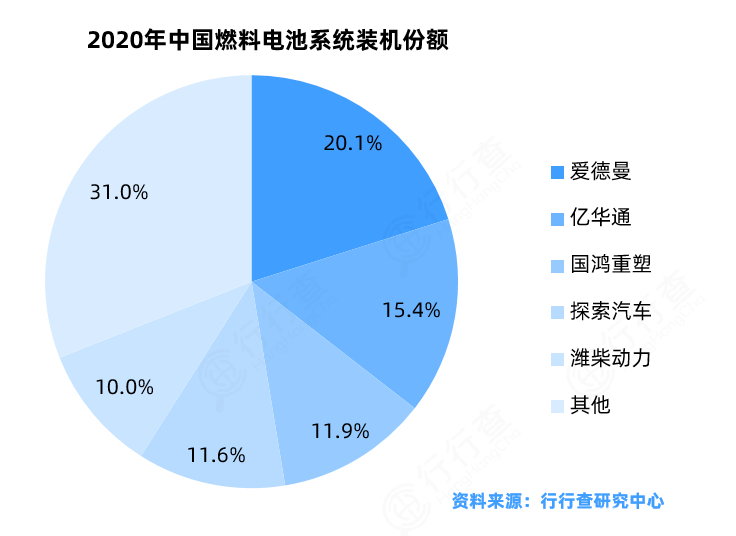 目前燃料電池產(chǎn)業(yè)在我國發(fā)展迅速,主要以整車組裝、示范運(yùn)營為主,產(chǎn)業(yè)鏈中電堆、膜電極、雙極板等核心技術(shù)布局較少。目前我國自主研發(fā)和引進(jìn)國外成熟技術(shù)的廠商并存,但關(guān)鍵部件材料性能與生產(chǎn)亟待提升。當(dāng)前國內(nèi)燃料電池系統(tǒng)裝機(jī)市場屬于寡頭競爭,CR5占比超過50%。2020年,國內(nèi)燃料電池系統(tǒng)裝機(jī)市場份額排名前五的廠商分別為愛德曼、億華通、國鴻重塑、探索汽車、濰柴動力,市占率總和為約為70%。現(xiàn)階段我國燃料電池發(fā)動機(jī)系統(tǒng)及電堆獨(dú)立供應(yīng)商主要分為三類,一類是較早從事燃料電池行業(yè)且具備自主核心技術(shù)的發(fā)動機(jī)供應(yīng)商,以新源動力、億華通、弗爾賽為代表;另一類是近年來興起的以國際技術(shù)引進(jìn)與合作見長、具備一定批量化生產(chǎn)能力的供應(yīng)商,以上海重塑、國鴻氫能為代表;此外還有一系列上市公司通過投資、產(chǎn)業(yè)鏈合作與技術(shù)引進(jìn)等方式不斷拓展燃料電池相關(guān)業(yè)務(wù),以大洋電機(jī)、雄韜股份為代表。