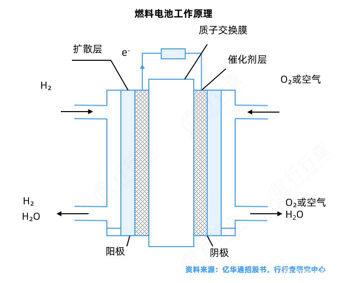 上游材料:上游主要包括膜電極、雙極板和密封層。其中,膜電極由催化劑、質(zhì)子交換膜和氣體擴(kuò)散層三種組分構(gòu)成。膜電極是燃料電池電化學(xué)反應(yīng)最重要的基本單元,它的結(jié)構(gòu)設(shè)計和制備工藝技術(shù)是燃料電池的關(guān)鍵技術(shù),決定了電池的工作性能。