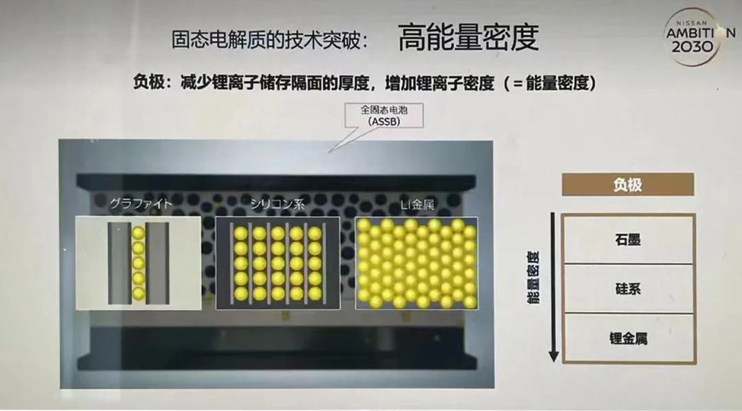 與液態(tài)電池相比,固態(tài)電池首當(dāng)其沖的優(yōu)點就是重量輕,能量密度高。“全固態(tài)電池的一個優(yōu)點是單位重量能量密度高,固態(tài)電池的重量是遠遠輕于液態(tài)電池的,這樣使得續(xù)航距離的損失減少一些。”日產(chǎn)在發(fā)布會上指出,日產(chǎn)汽車固態(tài)電池的能量密度預(yù)計將達到1000Wh/L,同樣體積的情況下,續(xù)航里程將是液態(tài)電池的兩倍。
