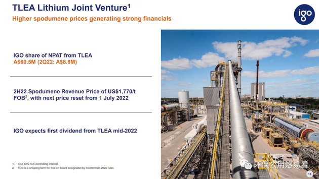 按照上述IGO業(yè)績會披露的數(shù)據,今年一季度泰利森格林布什礦開采量創(chuàng)下季度歷史記錄,確認來自TLEA的凈利潤貢獻較2021年四季度環(huán)比增長了587.5%。