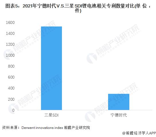 三星SDI依托母公司三星集團,有較強的研發能力。截至2021年1月,根據Derwent innovations index的統計,目前三星SDI鋰離子電池領域的專利數為1523項,相較于寧德時代的298項,具有明顯的優勢地位。
