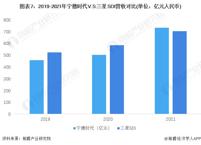 (注:(1)三星SDI營收按照2022年4月15日匯率1韓元=0.0052人民幣換算;(2)寧德時代的2021年營收為前三季度營收。)