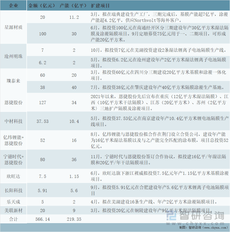相關報告:智研咨詢發布的《2022-2028年中國鋰電隔膜行業市場運行格局及前景戰略分析報告》