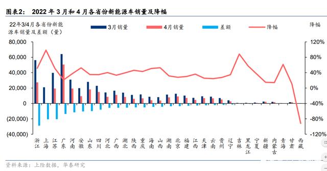 疫情擾動(dòng)下,4 月新能車(chē)需求觸底。疫情沖擊下,4 月新能源車(chē)上險(xiǎn) 26.5 萬(wàn)輛,同比增長(zhǎng) 58.13%,環(huán)比下降 40.70%。受上海、廣東疫情管控影響,周邊省份銷(xiāo)量降幅明顯,其中 浙江、上海、江蘇、廣東、安徽兩月銷(xiāo)量差額過(guò)萬(wàn),上海銷(xiāo)量降幅高達(dá) 98.37%。其他非直 接涉疫封控省份銷(xiāo)量降幅在 20%左右。5 月產(chǎn)銷(xiāo)量已有明顯回升,新能源車(chē)市場(chǎng)韌性凸顯。5 月產(chǎn)銷(xiāo)量快速修復(fù),國(guó)內(nèi)產(chǎn)量約 46.6 萬(wàn)輛(同增 114.6%,環(huán)增 49.4%),國(guó)內(nèi)銷(xiāo)量約 44.7 萬(wàn)輛(同增 105.6%,環(huán)增 49.6%)。 按照乘聯(lián)會(huì)的數(shù)據(jù)看,5 月特斯拉的批發(fā)量較 3 月份低 3.4 萬(wàn)輛,考慮到 6 月疫情逐步好轉(zhuǎn), 受影響地區(qū)有望進(jìn)一步恢復(fù),貢獻(xiàn)增量。