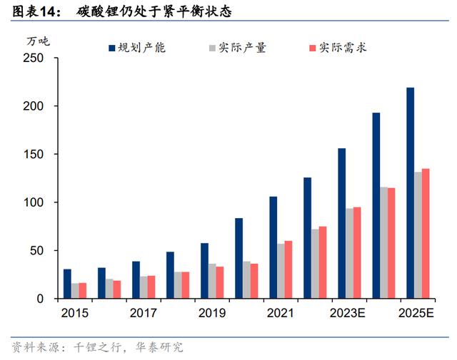 金屬價(jià)格后續(xù)走勢(shì)仍需觀察。雖碳酸鋰價(jià)格出現(xiàn)一定回調(diào)趨勢(shì),但碳酸鋰仍處于緊平衡狀 態(tài),后續(xù)價(jià)格或?qū)⑽挥诟呶徽鹗帯⒖记т囍薪y(tǒng)計(jì),鋰資源規(guī)劃產(chǎn)能雖增長(zhǎng)較快,但考 慮到實(shí)際投產(chǎn)節(jié)奏,22/23 年實(shí)際供給約 72/94 萬(wàn)噸,需求 75/95 萬(wàn)噸,整體處于緊平衡狀 態(tài),后續(xù)價(jià)格走勢(shì)仍需觀察。