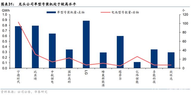 電池環(huán)節(jié)單位 GWh 投資額較高,屬于重資產(chǎn)投資環(huán)節(jié)。電池產(chǎn)業(yè)鏈各環(huán)節(jié)投資額量綱不一, 我們按照單位 GWh 產(chǎn)出算得電池/正極/前驅(qū)體/負(fù)極/隔膜/電解液投資額分別為 4/0.81/0.49/0.25/0.52/0.07 億元; 電池環(huán)節(jié)單位 GWh 投資額仍在 3 億元以上,顯著高于其 他環(huán)節(jié)。同時(shí),投資額與產(chǎn)品/規(guī)模效應(yīng)有關(guān),同樣產(chǎn)品下,龍頭公司投資額有明顯優(yōu)勢(shì)。