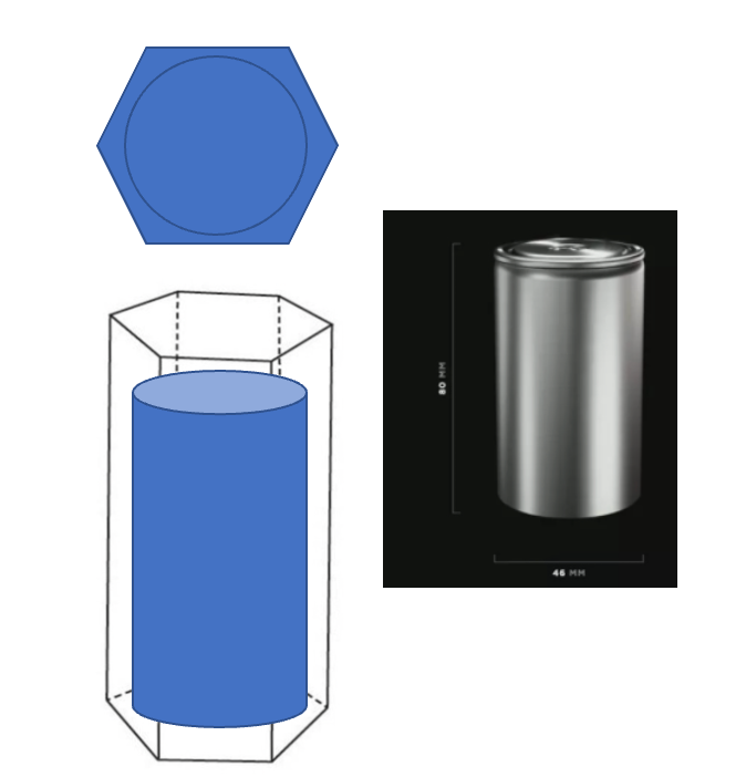 極芯為圓柱形卷繞極芯,在這個正六邊形棱柱的空間內。殼體的高度在60~150mm之間,殼體的內接圓直徑在15~60mm之間。對應的特斯拉的4680的高度為80mm,內徑為46mm,也在此之間。這個電池的殼體借鑒了蜂巢的結構設計,六棱柱的結構能夠提升整個空間的利用率,同時還利用殼體結構,增強了整個電池的結構強度。