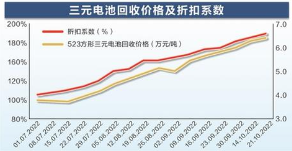 “本輪折扣系數的上漲摻雜了較多投機因素,目前市場采購價格體系較為混亂,尤其是三元材料的折扣系數。” 上海鋼聯新能源事業部動力電池分析師王學雷告訴證券時報·e公司記者,在利潤空間被大幅壓縮的情況下,回收企業更趨向精細化管理,開始重新審視電池回收料的計價方式,并逐步推廣把鋰元素直接納入計價體系。