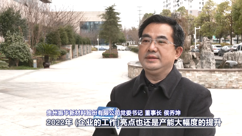 貴州振華新材料股份有限公司黨委書記、董事長 侯喬坤 :2022年,(企業的工作)亮點是產能大幅的提升,產能的提升助力我們在銷售市場上大幅增長,營業收入首次突破了100億大關,這些都為我們快速發展提供了支撐。