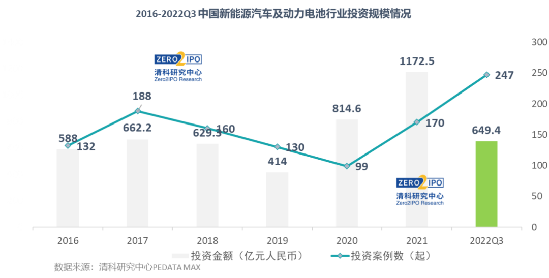 2022年前三季度,在中國股權投資市場投資步伐明顯放緩的背景下,新能源汽車行業投資熱度仍保持高漲,投資案例數已超2021年全年,投資賽道轉移帶來投資總金額和單筆投資金額大幅度下降。