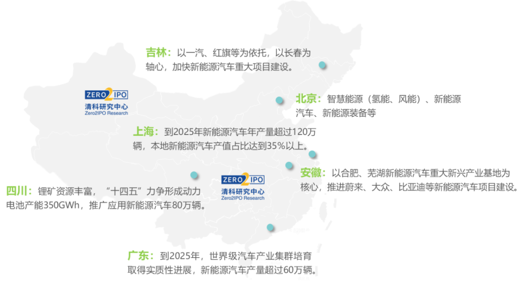 目前,國內已形成珠三角、長三角、京津冀、中三角、成渝西部、東北等六大新能源汽車產業集聚區。各地依托自身發展基礎及稟賦優勢,制定“十四五”期間新能源汽車產業發展目標。