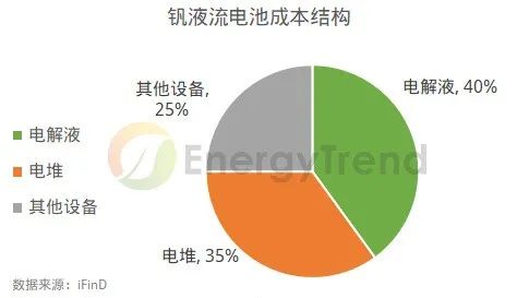 全釩液流電池在成本結構上主要分為電解液、電堆和其他設備這三個部分。全釩液流電池目前處于商業化初期,降本空間較為充足。在電解液方面,可以不斷優化電解液配方,提升其能量密度和實際利用率,從而降低單位儲能成本。