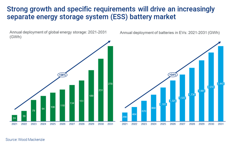 1、用于儲能系統的電池和動力電池的分化正在加速