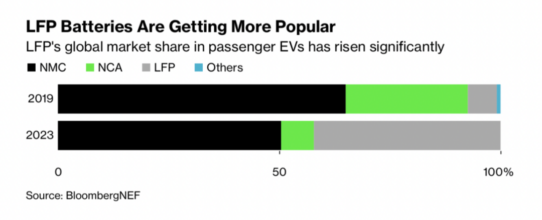 LFP在乘用車電動汽車中的全球市場份額大幅上升▼