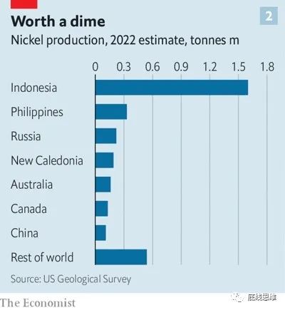2022年全球礦鎳產(chǎn)量預(yù)估,來源:美國地質(zhì)調(diào)查局