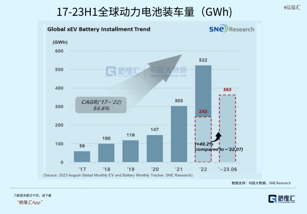 過去五年,全球動力電池裝機量保持著54.6%的高增長,今年前幾個月共有362.9GWh出貨,同比增49.2%。