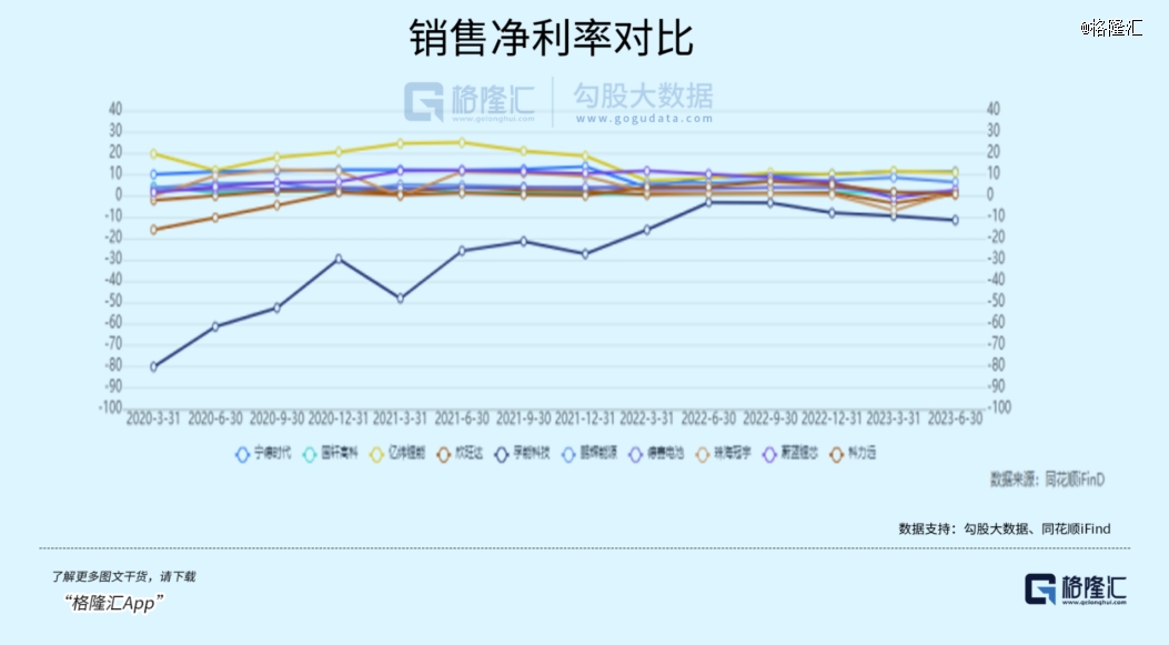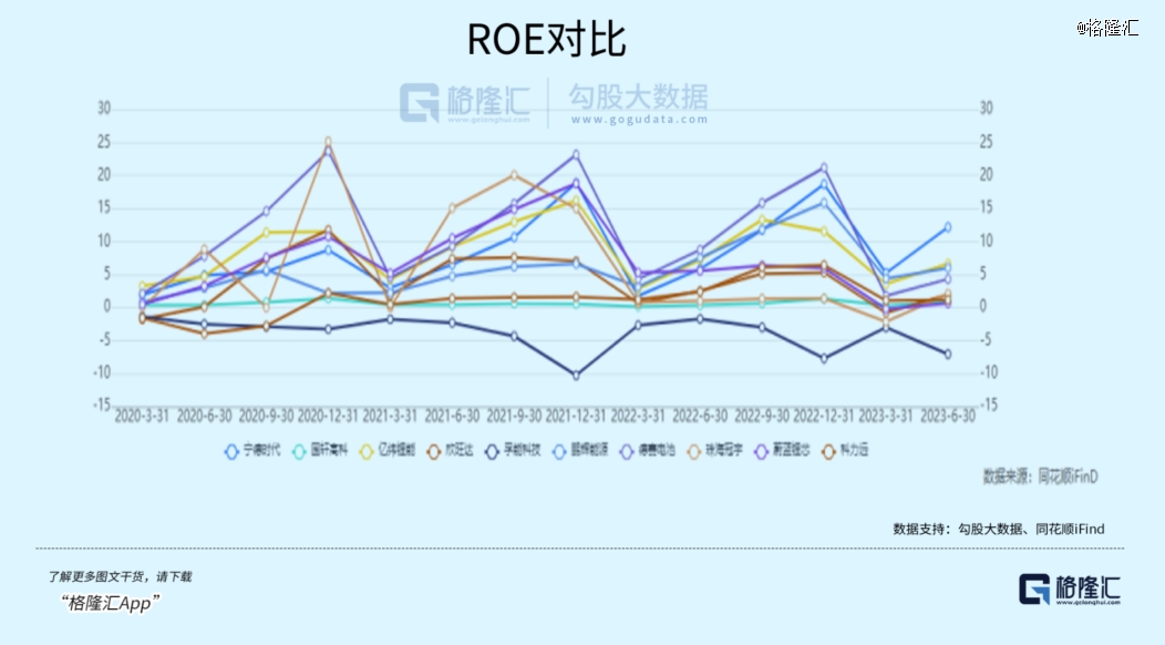 從 10 家電池公司對比來看,2023H1 寧德時代的毛利率最高,為 20.25%;2023Q2 珠海冠宇毛利率最高,為 22.47%。