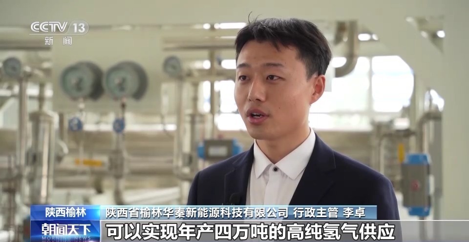 陜西省榆林華秦新能源科技有限公司行政主管 李卓:一期配套了16000立方米的儲氫系統(tǒng)和氫氣充裝站,可以實現(xiàn)年產(chǎn)四萬噸的高純氫氣供應。
