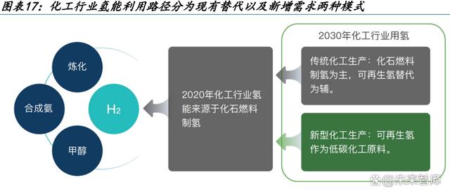 原料用氫:主要場景包含鋼鐵、化工等領域。氫氣是重要的工業氣體,氫元素的強 還原性被用于多種化學反應,是眾多化合物的基礎元素之一;ば袠I需要用氫制 備甲醇、合成氨等多種產品,冶鐵需要利用氫氣作為還原劑,多種高端材料的制造 在生產流程中均需要使用氫氣進行加工。