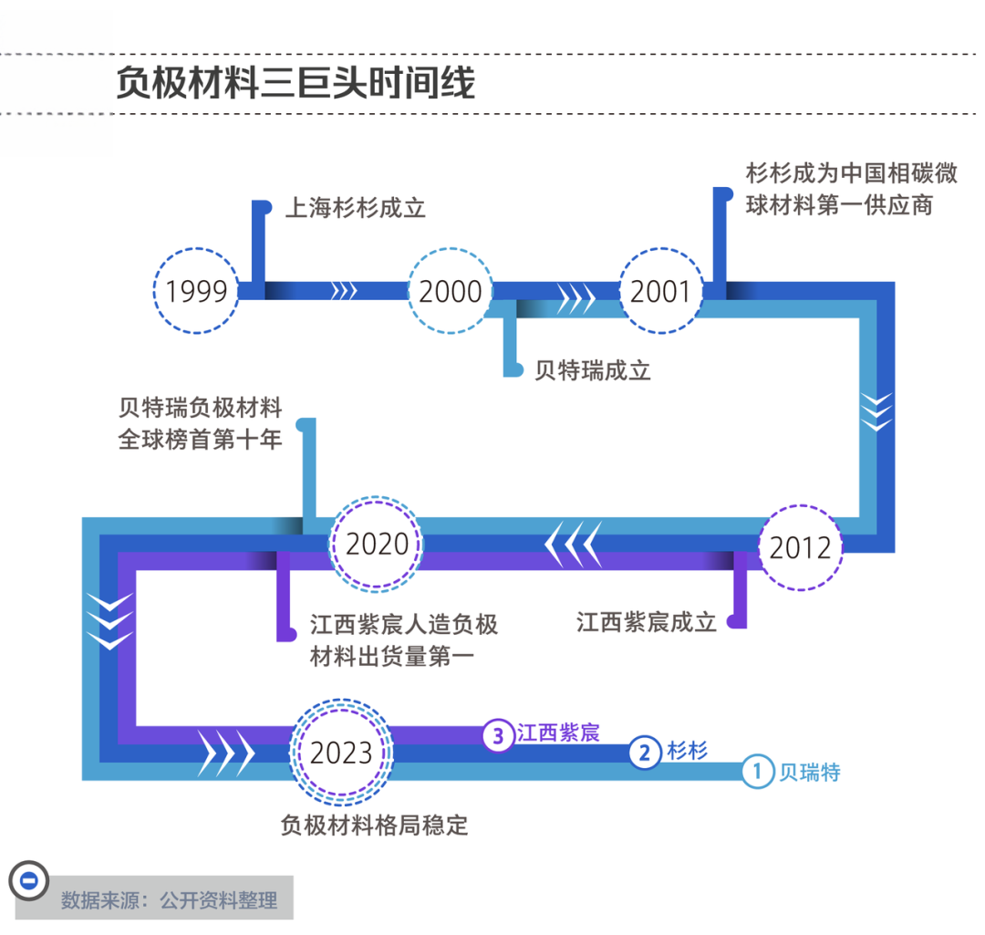 就這樣,已做到“打鐵自身硬”的貝特瑞,被日企和韓企聯手,送上了負極材料全球絕對第一的寶座:2011年,貝特瑞出貨量全球市占率26.8%。貝特瑞在全球負極市場大放異彩的第二年,一家叫做江西紫宸的負極材料公司成立了,其以人造石墨為主營產品。