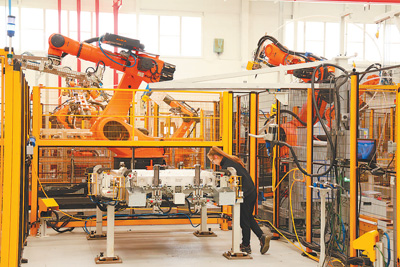 電池盒生產線上工作。人民日報記者 尚凱元攝