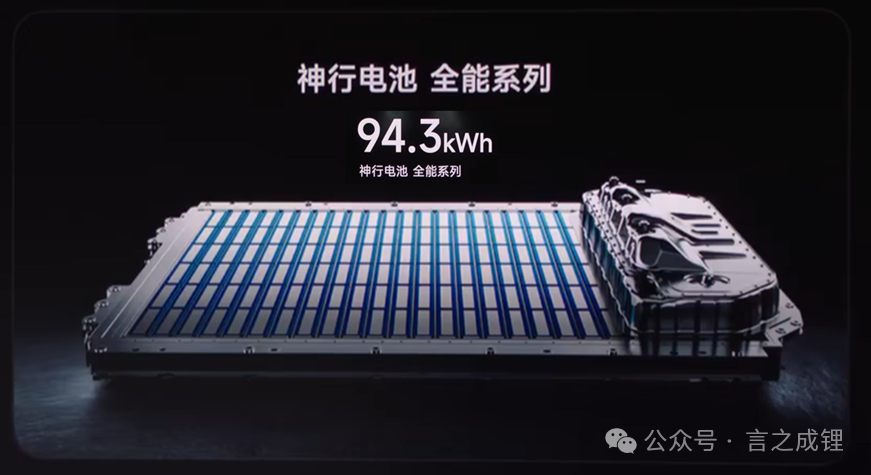 考慮到Pro版本的能量提高到了94.3kWh, 按照發布會上的示意圖,最少也有132串,總電壓482V,非常接近486V的上限了。而電芯容量接近223Ah,也比刀片電池高出了20%左右。