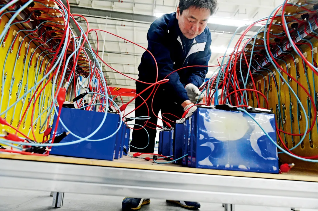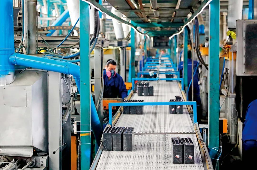河北邢臺(tái)市新河縣一家電池企業(yè)內(nèi),工作人員在生產(chǎn)線上加工電池。新河縣打造新型電池產(chǎn)業(yè)基地,引進(jìn)廢鉛酸電池回收、處置項(xiàng)目,延伸電池“生產(chǎn)—回收—再生”的綠色循環(huán)產(chǎn)業(yè)鏈。圖/新華