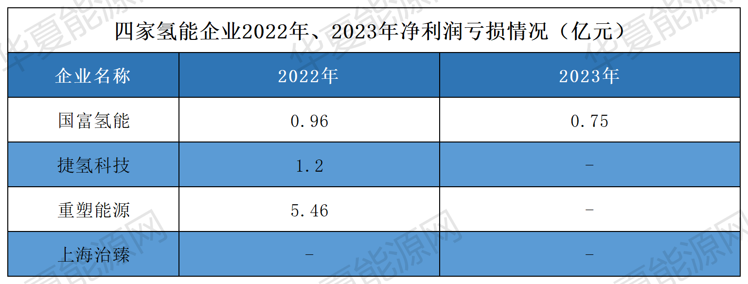 從已披露的業(yè)績來看,國富氫能、捷氫科技、重塑能源、上海治臻均存在虧損情況。