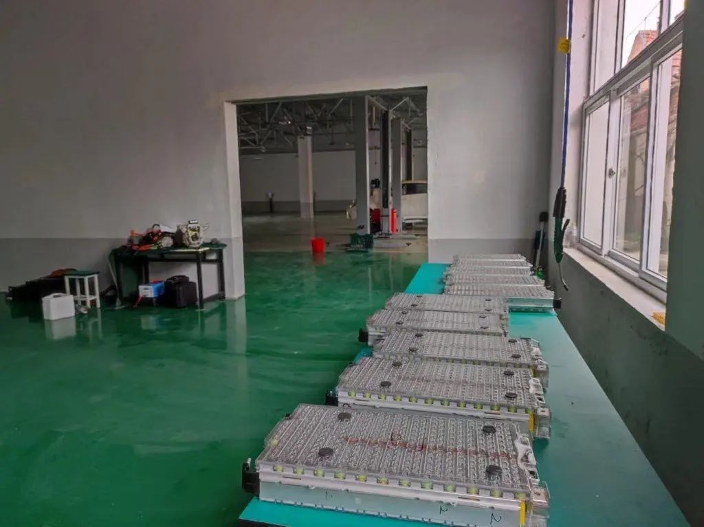正在建設(shè)中的廢舊電池打粉產(chǎn)線。受訪者供圖