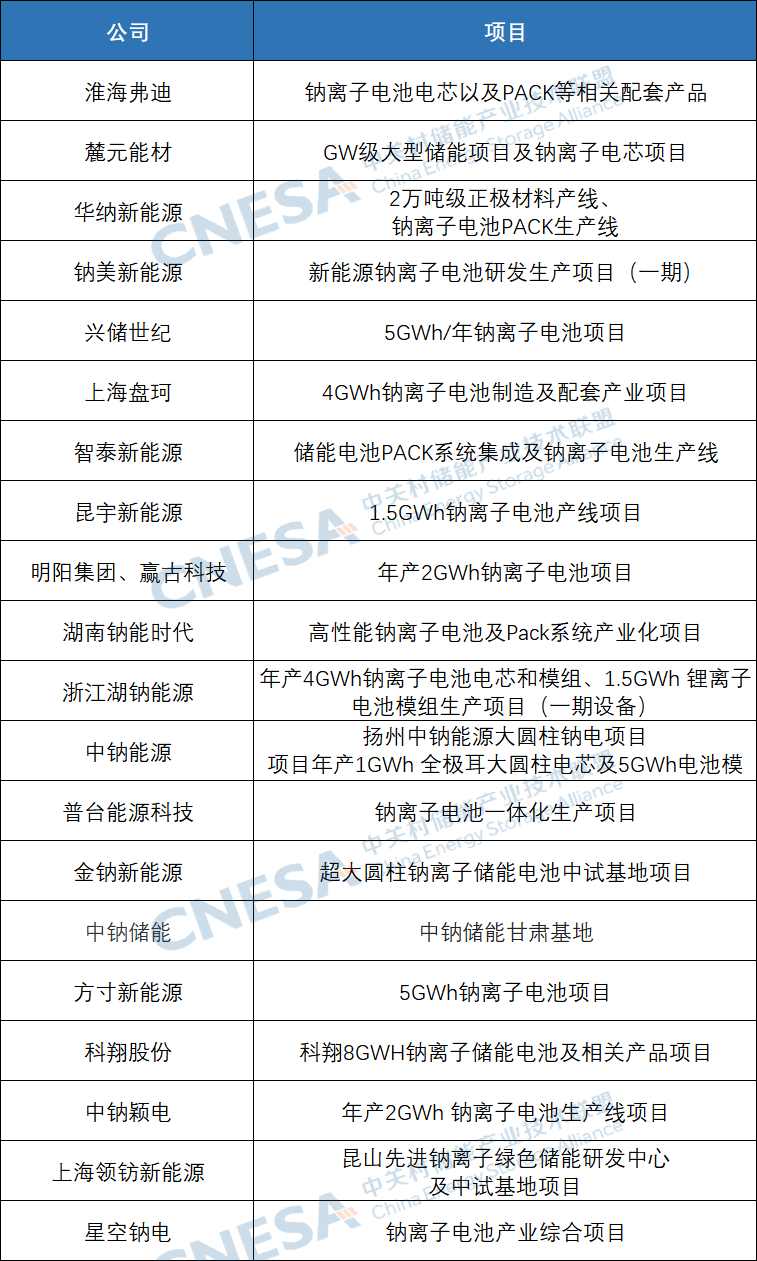 除了廣西伏林鈉離子電池儲(chǔ)能電站外,國(guó)內(nèi)多個(gè)項(xiàng)目都開(kāi)啟了鈉離子電池的示范應(yīng)用。