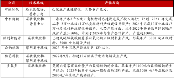 競爭格局上,寧德時代(300750.SZ)在鈉離子電池技術研發和產業化方面走在中國乃至全球的前沿。寧德時代在鈉離子電池的研發上投入巨大,甚至超過一些國際頭部企業。早在2021年7月,寧德時代就發布了其第一代鈉離子電池,電芯單體能量密度已達160Wh/kg,兼具高能量密度、高倍率充電、優異的熱穩定性、良好的低溫性能與高集成效率等優勢。
