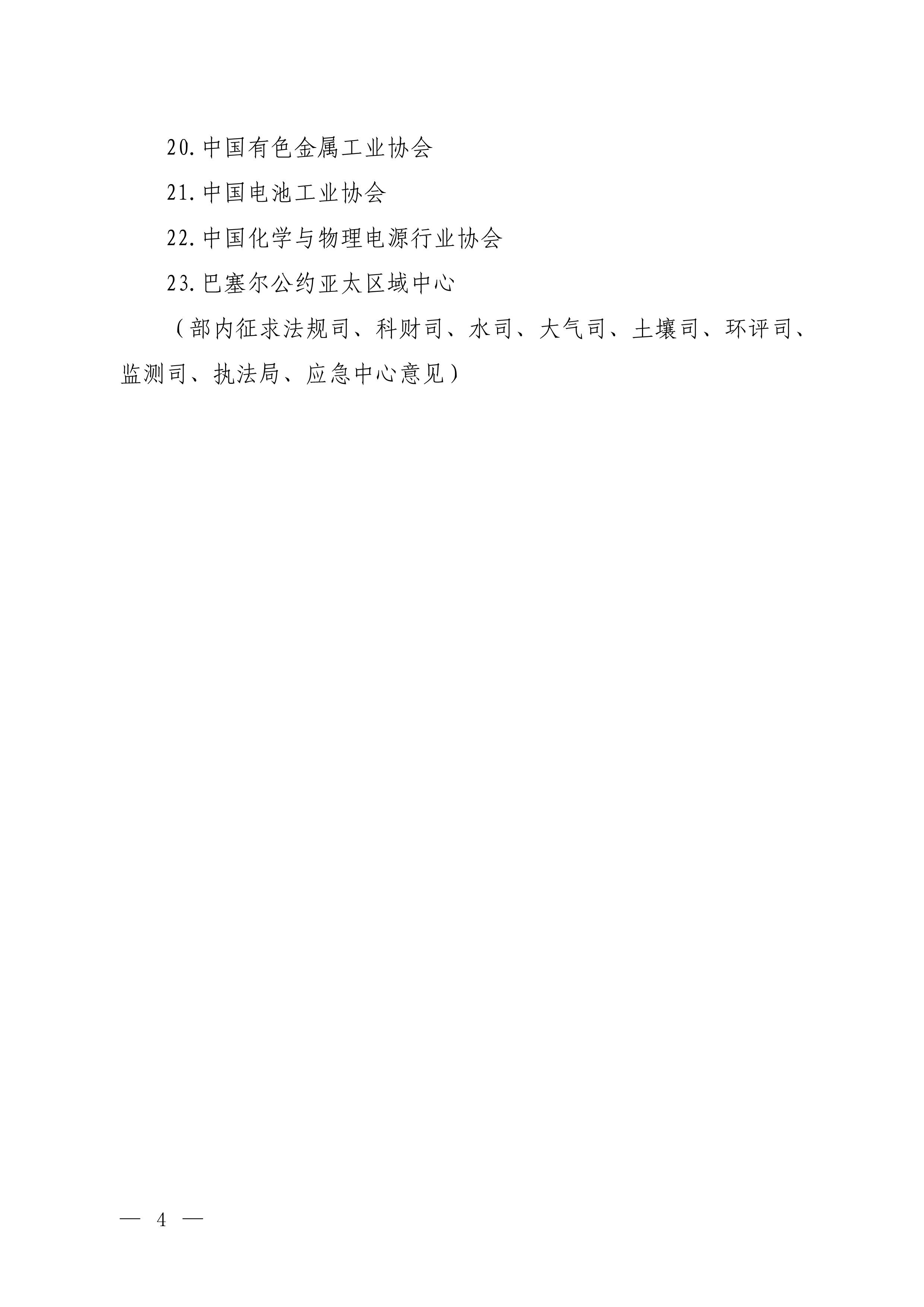 關(guān)于征求國(guó)家環(huán)境保護(hù)標(biāo)準(zhǔn)《廢鋰離子動(dòng)力蓄電池處理污染控制技術(shù)規(guī)范(征求意見(jiàn)稿)》意見(jiàn)的函