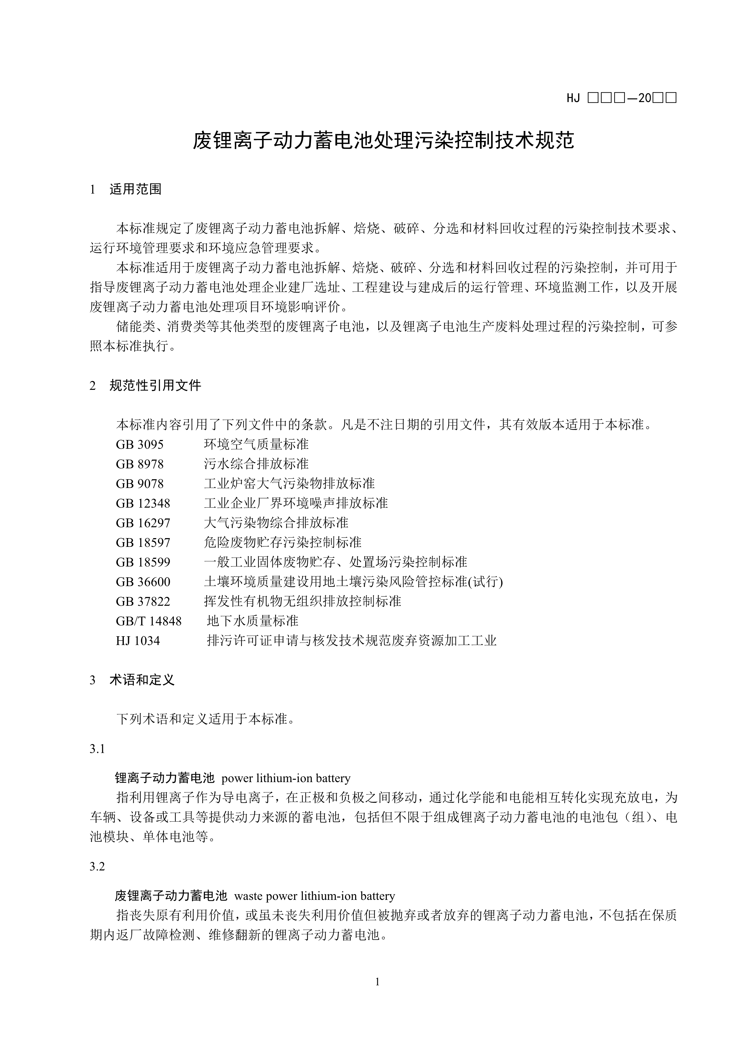 2.廢鋰離子動(dòng)力蓄電池處理污染控制技術(shù)規(guī)范(征求意見(jiàn)稿)