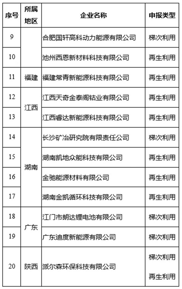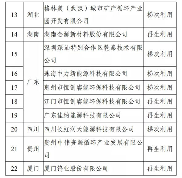 第三批《新能源汽車廢舊動力蓄電池綜合利用行業(yè)規(guī)范條件》企業(yè)名單