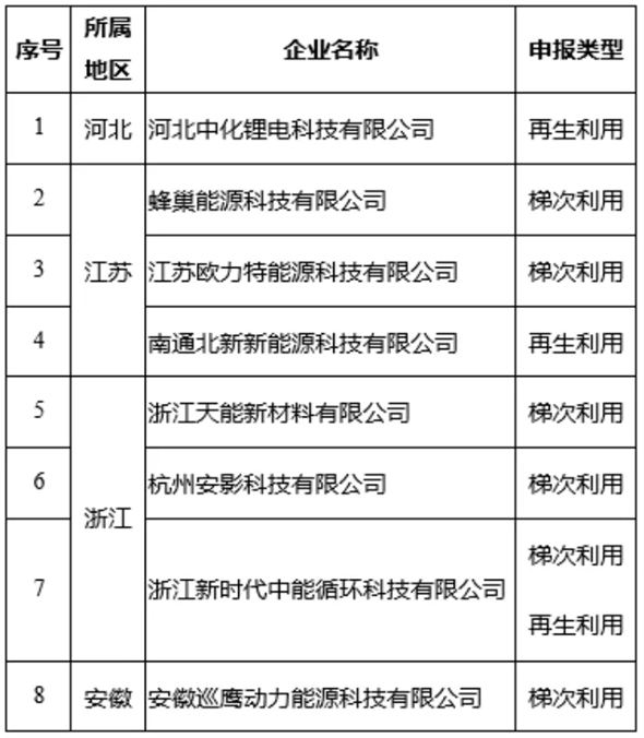 第一批《新能源汽車廢舊動力蓄電池綜合利用行業(yè)規(guī)范條件》企業(yè)名單