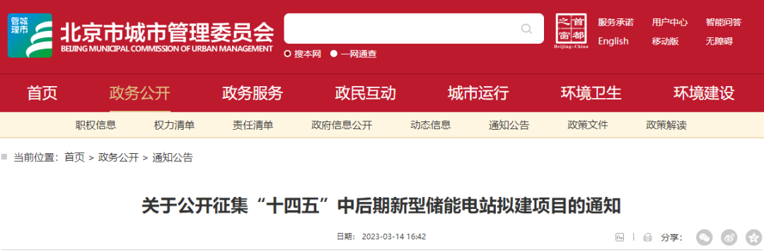 3月14日,北京市城市管理委員會發布《關于公開征集“十四五”中后期新型儲能電站擬建項目的通知》(簡稱“通知”)。