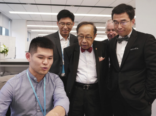 陳清泉院士在丁磊董事長(右一)、墨斐(右二)和陳威旭(左二)陪同下參觀了上海技術(shù)中心和運營中心。