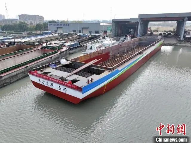 “東方氫港”號順利下水。嘉興港區供圖