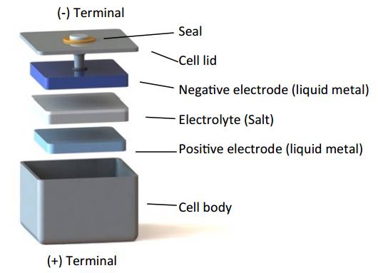 Sadoway教授的液態金屬電池:陰陽極均為金屬,電解液為熔鹽來源:Ambri主頁