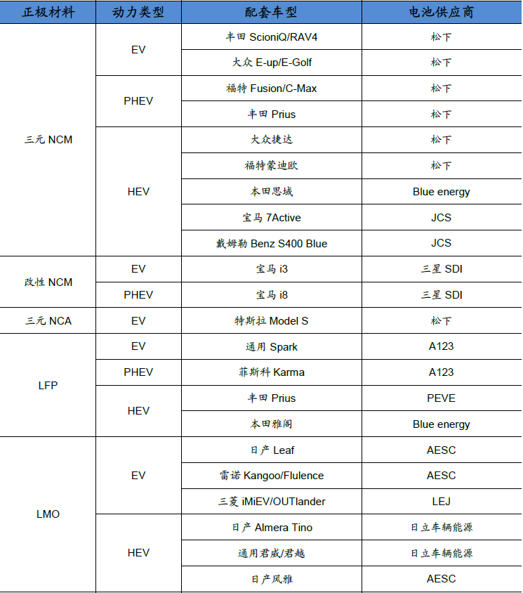 2016年全球新能源汽車主要車型技術(shù)路線及電芯供應(yīng)商