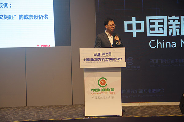 電池峰會(huì)”上,中國(guó)電器工業(yè)協(xié)會(huì)會(huì)長(zhǎng)助理王琨到會(huì)致辭。