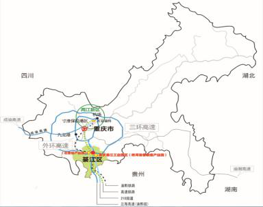 重慶向南出海大通道上的重要節點,介于重慶二環到三環之間,高速公路30分鐘達重慶主城、40分鐘達寸灘港保稅港區,50分鐘達江北機場和西永綜合保稅區,渝貴鐵路20分鐘達重慶主城,2小時直達成都、貴陽。
