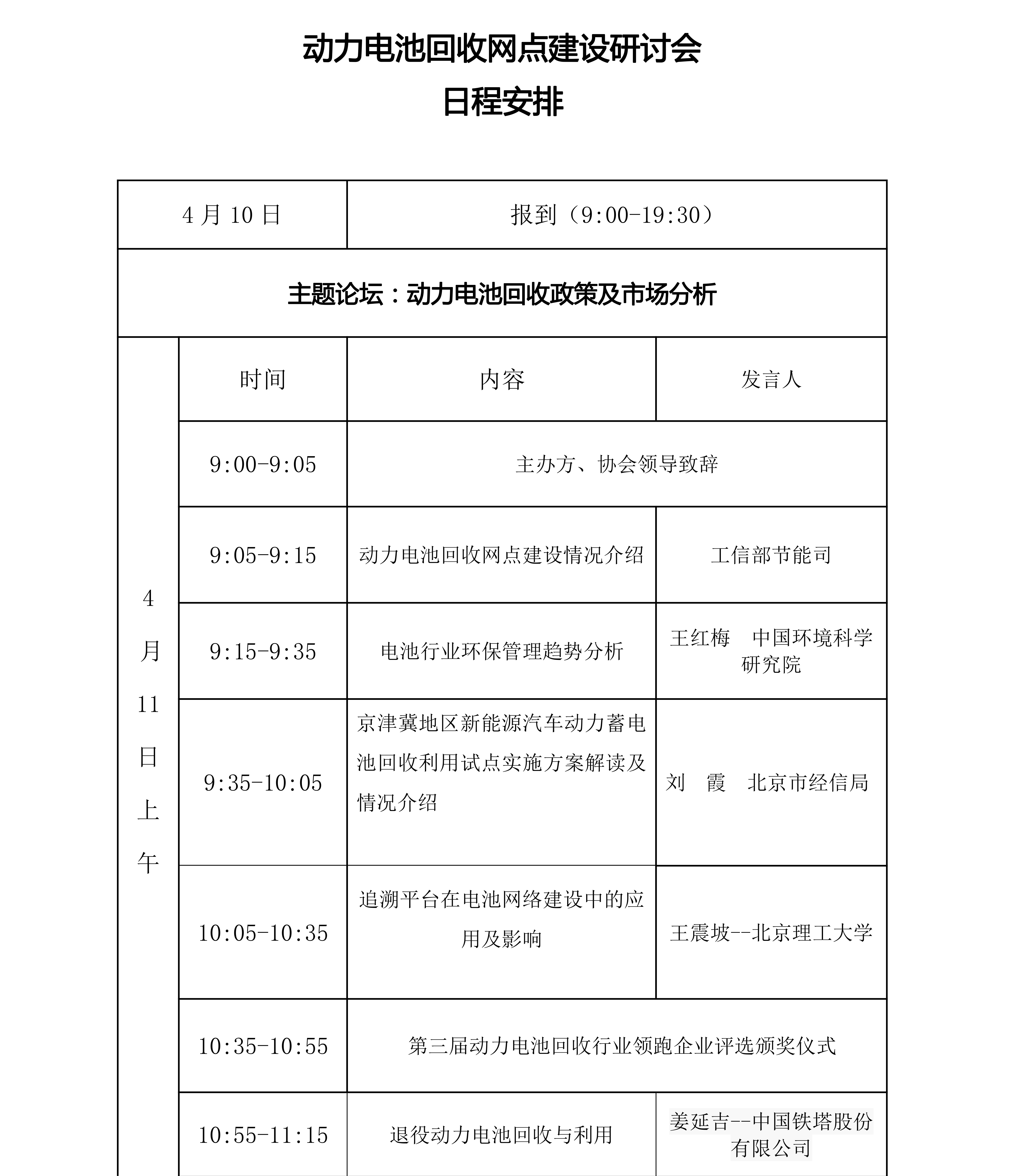 由電池聯盟、中國電子節能技術協會電池專委會主辦,中國鐵塔、清華大學、北京理工大學支持的動力電池回收網點建設研討會將于4月10-12日召開,泰力電池董事長張永祥將在本次會議上帶來廢舊電池的倉儲建設及技術應用的演講。
