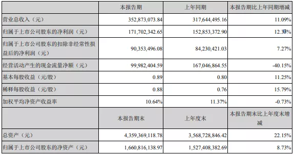 8月7日,星源材質(zhì)(以下簡稱“公司”)發(fā)布2019年半年度報告。2019年上半年,公司實現(xiàn)營業(yè)總收入3.53億元,較上年同期增長11.09%;歸屬于上市公司股東的凈利潤1.72億元,較上年同期增加12.33%。主營業(yè)務鋰離子電池隔膜新能源材料營業(yè)收入3.12億元,比上年同期增減0.50%。