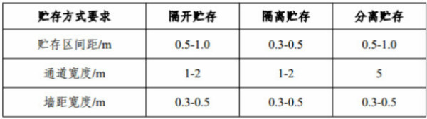 貯存方式應符合下表中各項規定: