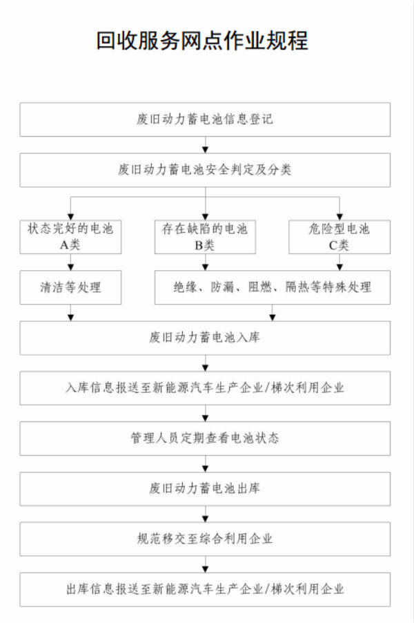 其次是工作要求,新能源汽車生產及梯次利用等企業應依托回收服務網點加強對廢舊動力蓄電池的跟蹤。