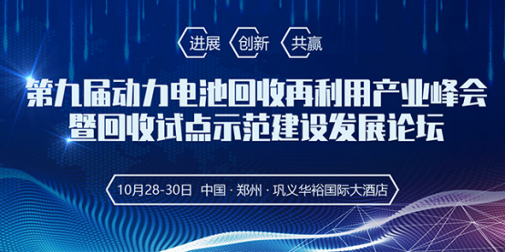 為加快新能源汽車動力蓄電池回收利用進(jìn)程,保障動力電池高效回收利用與無害化處置,電池聯(lián)盟將于2019年10月28-30日,在鄭州·鞏義華裕國際大酒店召開“第九屆動力電池回收再利用產(chǎn)業(yè)峰會暨回收試點示范建設(shè)發(fā)展論壇”。