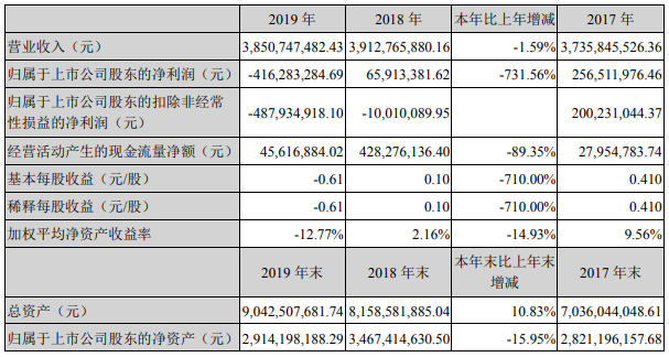 4月23日,多氟多發布2019年年度報告。2019年公司完成營業收入38.51億元,較去年同期下降1.59%;歸屬于上市公司股東的凈利潤-4.16億元,同比下降731.56%;期末總資產90.43億元,較去年同期增長10.83%;歸屬于上市公司股東的凈資產29.14億元,較去年同期下降15.95%;基本每股收益為-0.61元,上年同期為0.1元。