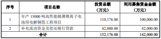 其中,年產15000噸高性能極薄鋰離子電池用電解銅箔工程項目是諾德股份年產40000噸動力電池用電解銅箔項目的一部分,本次使用募集資金投資建設其中的15000噸產能。